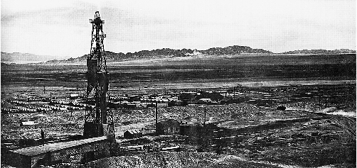 1958年9月13日,一股巨大的油流在冷湖五號(hào)構(gòu)造地中四井沖天而起,日噴原油800多噸,3天3夜噴勢(shì)不減,井場(chǎng)周圍油浪翻滾。這一年,冷湖油田生產(chǎn)原油30萬噸,占當(dāng)時(shí)全國(guó)原油總產(chǎn)量的12%以上,為年輕的共和國(guó)注入了新鮮血液。冷湖由此成為繼玉門、四川、克拉瑪依之后的第四大油田。當(dāng)年年底,冷湖煉油廠煉制的成品油運(yùn)往西藏,供應(yīng)邊防部隊(duì)。