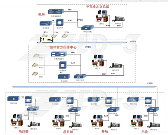 三級管理:系統分布式部署除了集中管理、分布部署的能力以外,還實現了自成體系、協同調度、壓力分擔、互為備份的能力。在北京總部可通過石油專網與榆林指揮中心進行語音視頻通信;在榆林指揮中心可通過IP網絡或衛星網絡與勘探現場項目部或井場進行語音通信;在項目部或井場建設臨時指揮中心可對現場人員進行指揮調度工作,并向榆林指揮中心、北京總部匯報現場工作,協同指揮,及時有效地處理問題。