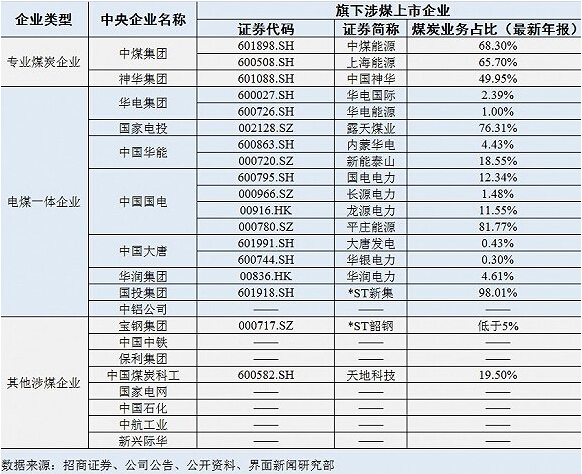 那么,究竟哪些央企是“涉煤央企”呢?