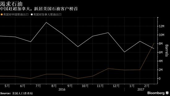 中國2月份超過加拿大,成美國原油最大買家。據(jù)美國人口普查局周二公布的數(shù)據(jù),中國2月份從美國進(jìn)口了808萬桶原油,創(chuàng)2015年底美國取消原油出口限制以來的最高水平。加拿大2月份從美國進(jìn)口原油684萬桶。