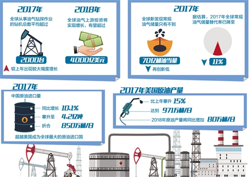 2014年油價下跌以來,為應對低油價,全球主要石油公司普遍采取向核心業(yè)務聚焦策略,大幅削減投資,作業(yè)鉆井量明顯下降。2017年隨著油價逐漸回升,全球油氣勘探走出低谷,鉆機作業(yè)量“止跌回升”。統(tǒng)計顯示,去年全球從事油氣鉆探作業(yè)的鉆機總數(shù)平均超過2000臺,較上年出現(xiàn)較大幅度增長。2017年美國頁巖油氣并購金額達到220億美元。勘探工作量和并購金額的增長,表明全球油氣勘探迎來了春天。業(yè)內(nèi)預計,2018年全球油氣上游投資將實現(xiàn)增長,有望超過4000億美元。