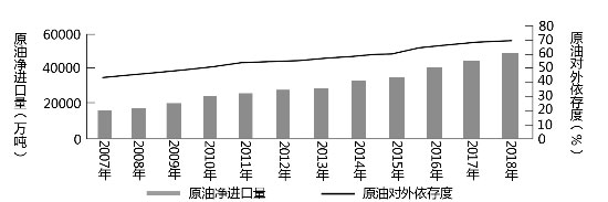 中國原油進口量及對外依存度變化(來源:2018年國內(nèi)外油氣行業(yè)發(fā)展報告)