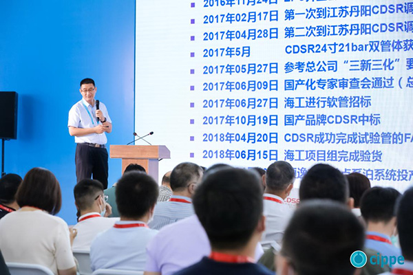 隨后作為用戶代表的海油工程設計公司與采油天津作業分公司分別就CDSR品牌的國產化外輸軟管的產品選型、檢測,工程安裝,現場應用等技術與業內人士進行了講解與分享。
